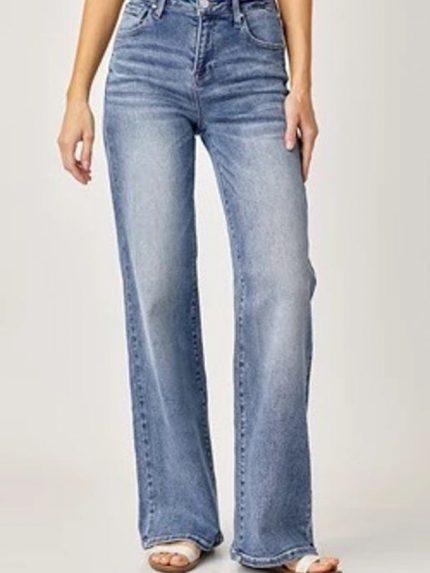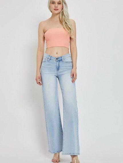 Mid Rise-Wide Leg-V Dipped Front Waist Jeans