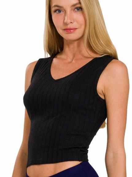Zenana Ribbed Scoop Neck Cropped Sleeveless Top