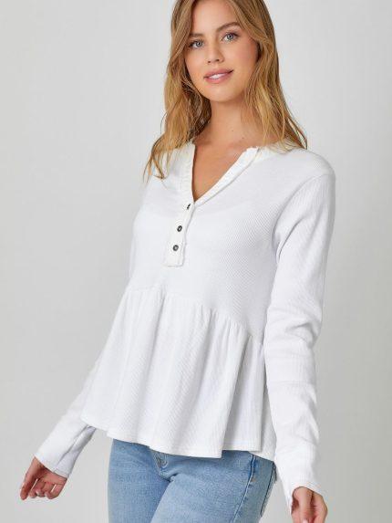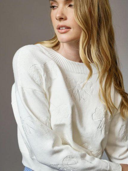 Woven Puff Sleeves Mixed with Round Neck Knit Sweater