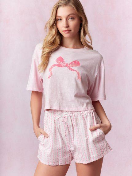 Bow Stripe Printed Cotton Shorts
