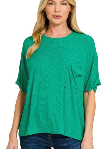 Oversized Ribbed Round Neck Short Sleeve Tee – K Green