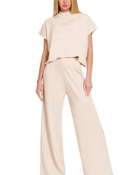 Viscose Sweater Short 2PCS Set – Sand Beige