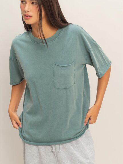 Washed Pocket Crew Neck T-Shirt – Dusty Teal