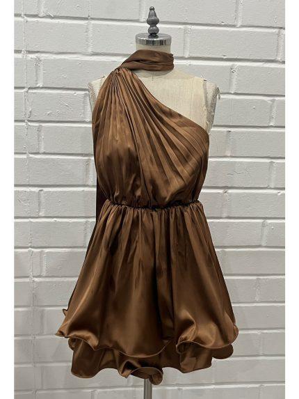 Halter Neck Haammered Satin Mini Dress Tie At Neck Underbu