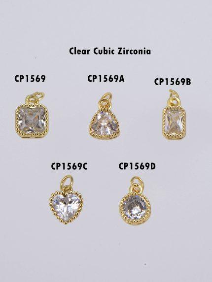 Gold Filled Geometric Charm, Solitaire CZ Pendant, CP1569