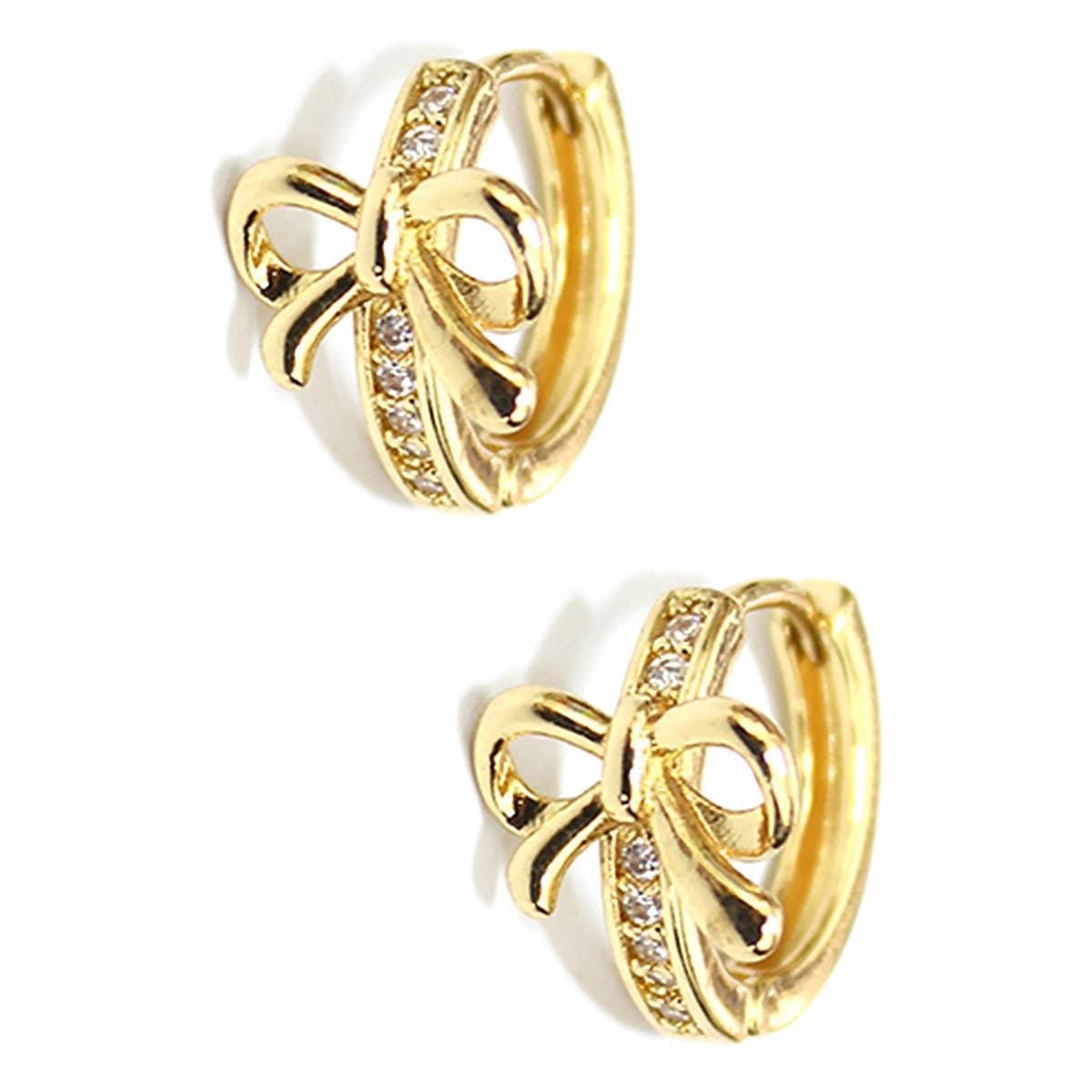 BRASS BOW HUGGIES WITH CZ PAVE