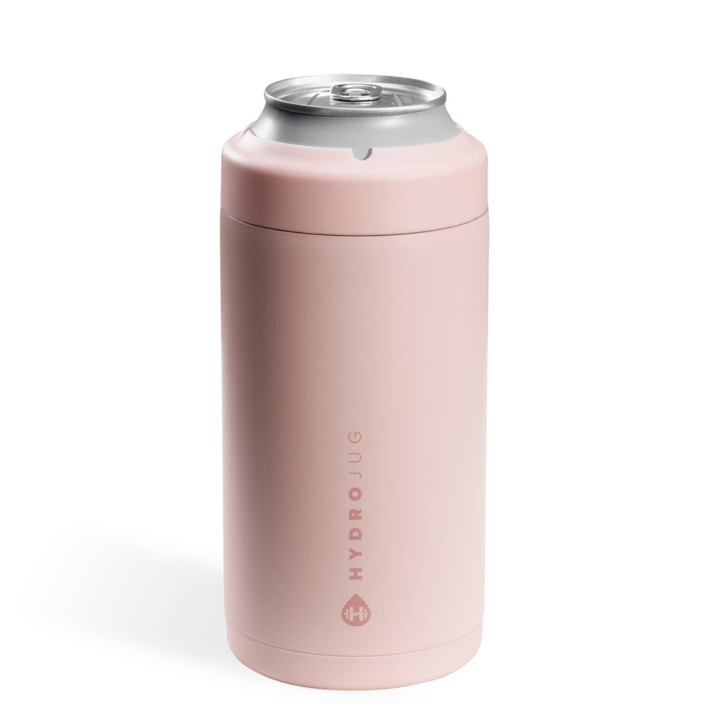 The Dusty Rose HydroJug 16 oz Can Cooler features an insulated design to keep your beverages cold for longer. Its portable size and stylish color make it a practical and aesthetic choice for on-the-go refreshment.