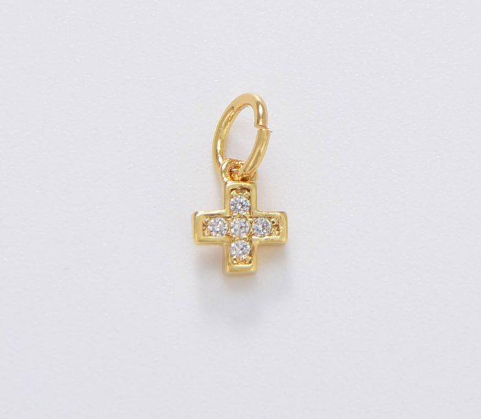 Gold Filled Tiny Cross Charm Pendant CZ Micro Pave, CP430