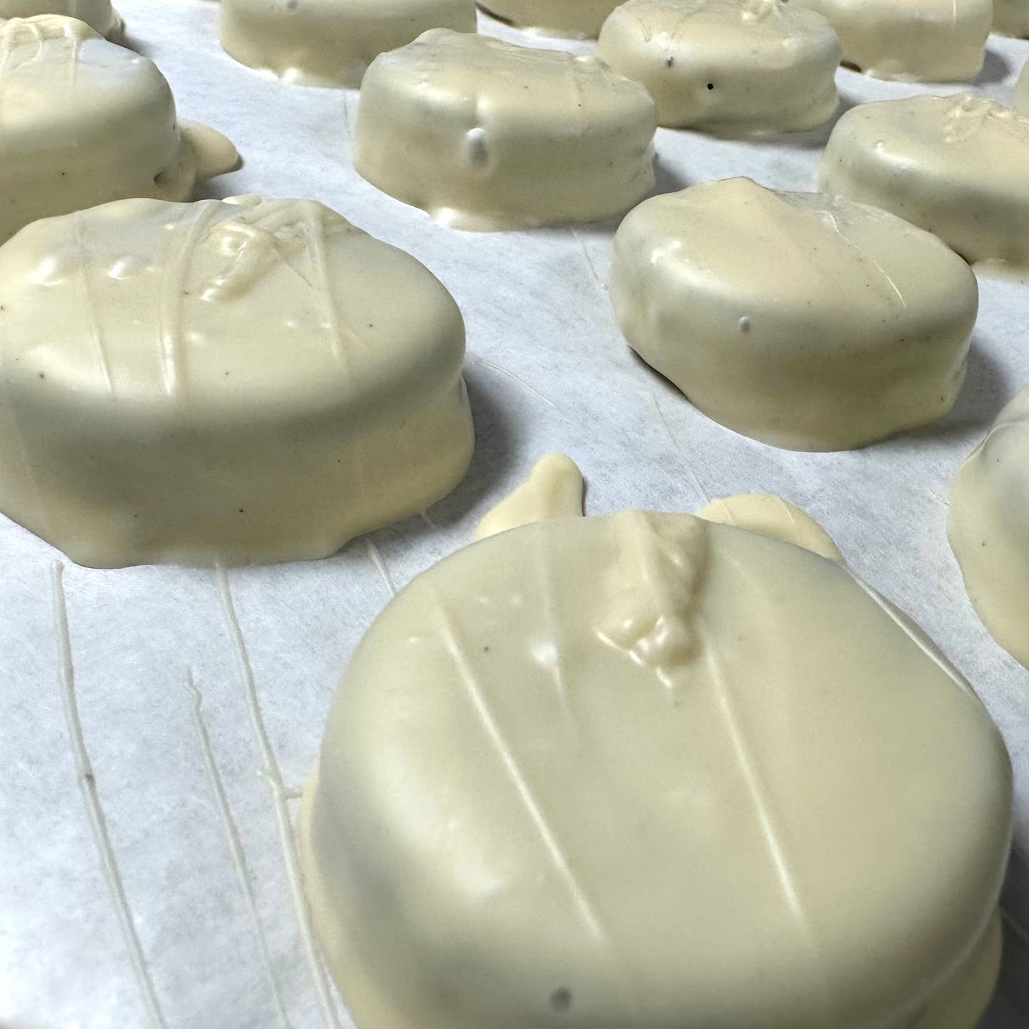 Hand-dipped white chocolate Oreos are a delightful treat perfect for the holiday season or any special occasion. Each Oreo is carefully submerged in our smooth, creamy white O’Shea’s chocolate, creating a luscious coating that melts in your mouth. Once dipped, the cookies are sprinkled with. The combination of the rich chocolate, crispy cookie creates an irresistible blend of textures and tastes. These treats are both visually appealing and delicious, making them a great gift or dessert centerpiece. Whether enjoyed with a cup of hot cocoa or given as a treat, these White Chocolate Oreos are a perfect mix of sweetness and cheer