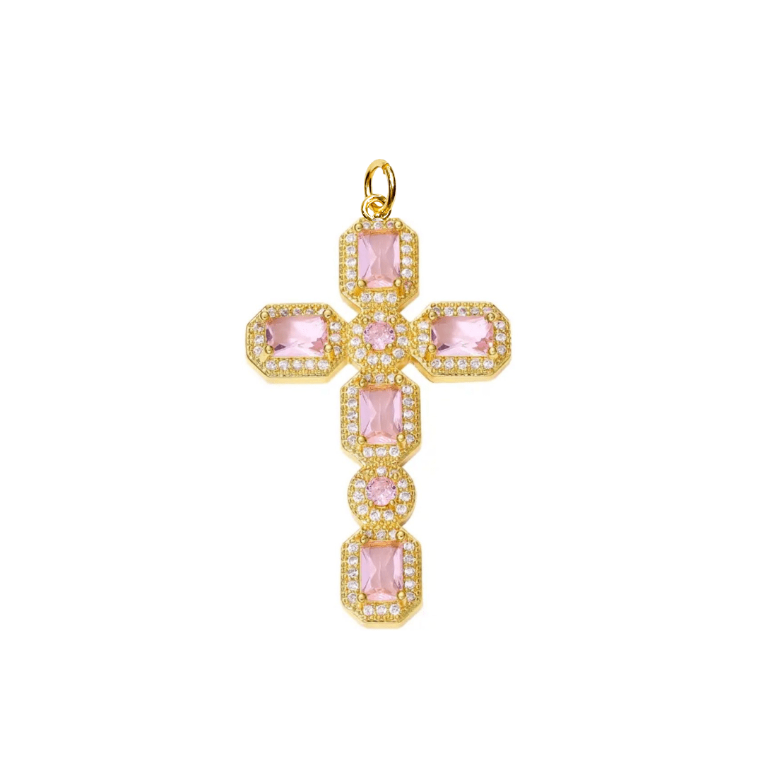 Pink Zircon Cross Charm For Charm Necklace & Bracelet
